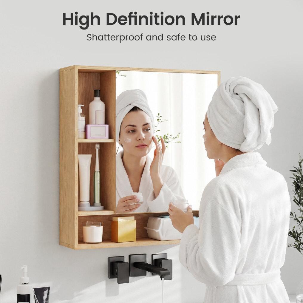 ● 2 in 1 Mirrored Cabinet: Featuring a high definition mirror combined with ample hidden storage, this space-saving wall mounted bathroom cabinet is a smart solution for small bathrooms. Plus, the mirror is shatterproof and safe to use.
