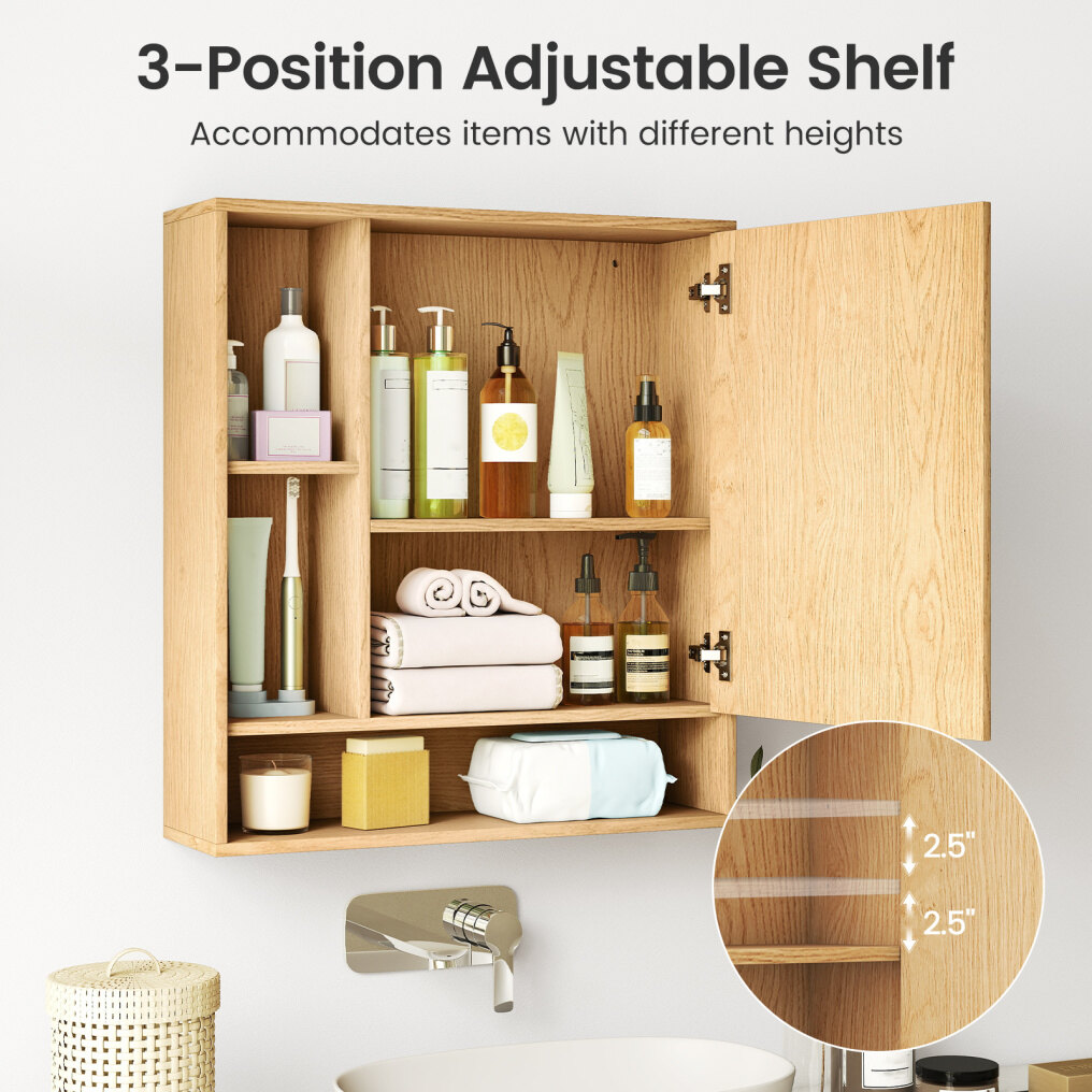 ● Adjustable Interior Shelf: This medicine cabinet includes a 3-position adjustable shelf behind the door, spaced 2.5"/6.4 cm apart. It allows you to easily accommodate items of varying sizes, providing customizable organization to fit your needs.