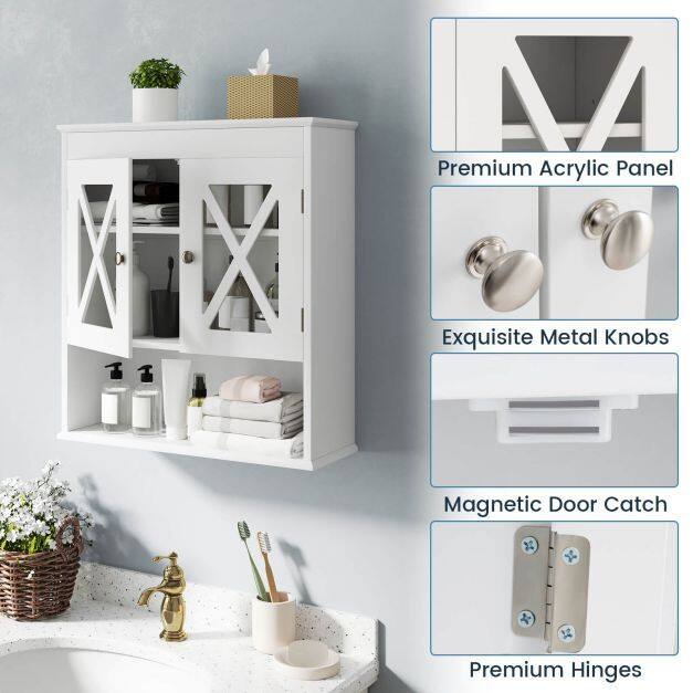 Sufficient Storage Space: Our bathroom wall cabinet features 2 acrylic doors that open to reveal ample space for towels, toiletries, skincare products, and more. The bottom open compartment offers easy access, perfect for storing frequently used items or displaying decorative elements.