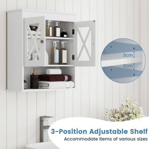 This over the toilet wall storage organizer features a 2-door cabinet and an additional open compartment at the bottom, offering generous storage for towels, toiletries, toilet paper, aromatherapy, and more. Inside, a 3-position adjustable shelf adapts effortlessly to fit items of various sizes. Constructed from premium acrylic and MDF boards, our sturdy and waterproof bathroom medicine cabinet is designed to withstand the rigors of daily use. Its modern appeal makes it a versatile addition to bathrooms, laundry rooms, living rooms, kitchens, or hallways. If you are looking for such a product, do not hesitate to buy it!