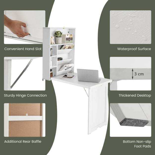 Versatile Convertible Laptop Desk: The wall-mounted desk boasts great adaptability, serving great as a laptop desk, writing desk, and dining table. In addition, its modern style and elegant appearance deliver perfect visual effect and add charming to your home. You can put it in the living room, bedroom, kitchen, office or other small space.