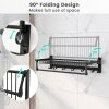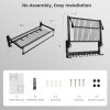● Plenty of Storage Space: The top basket and lower bar offer ample storage space for towels, shampoos, conditioners, facial cleanser and more. In addition, the folding towel shelf comes with 4 integrated hooks and 5 sliding hooks to hang bath balls, brushes, etc.
