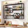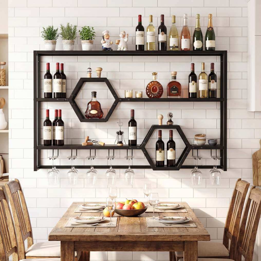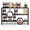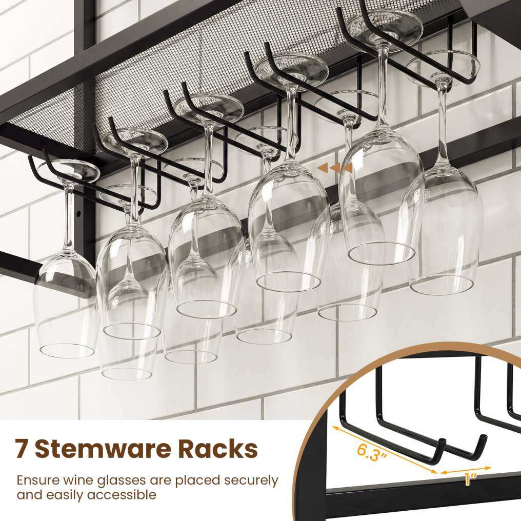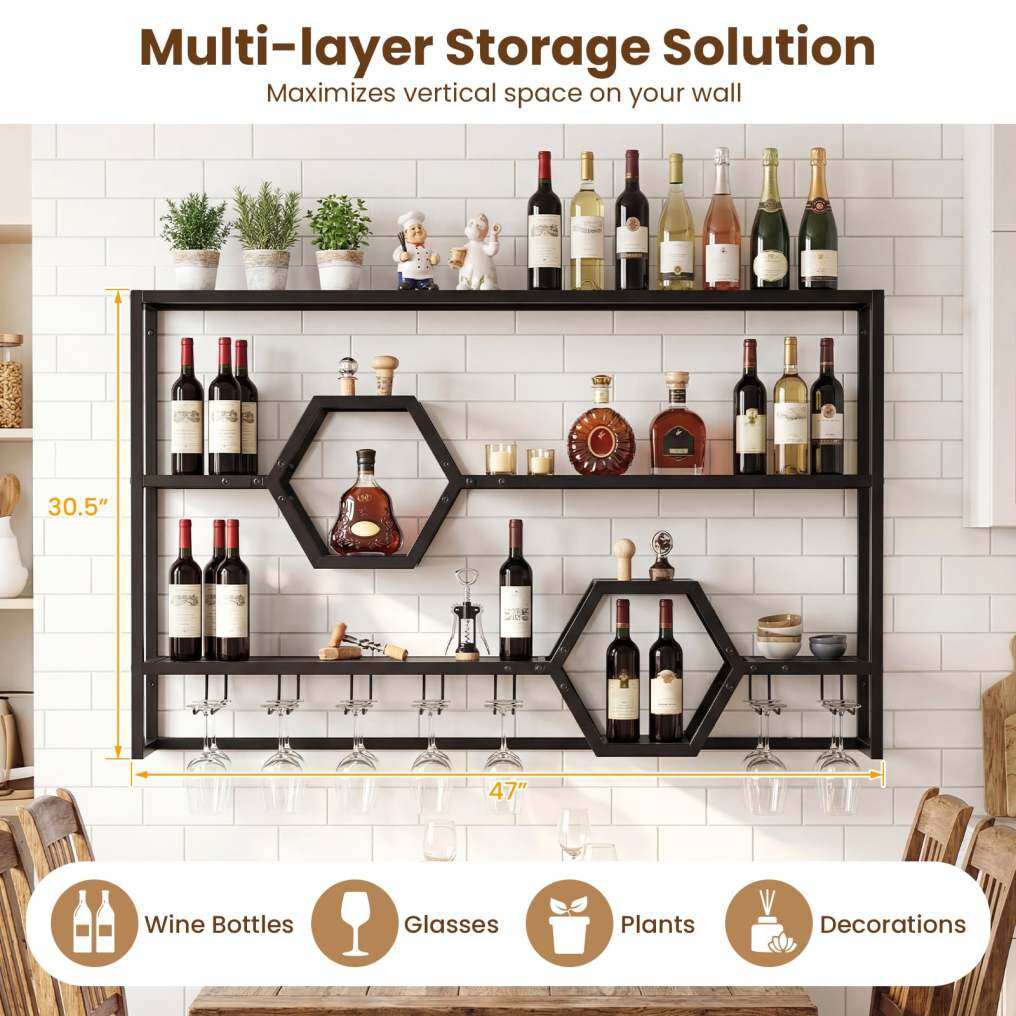 ● Multi-layer Storage Solution: The 47" wall wine rack features 3 floating shelves, 2 honeycomb cubbies and 7 stemware racks, offering organized storage space for your wine bottles, glasses, plants or decorations.