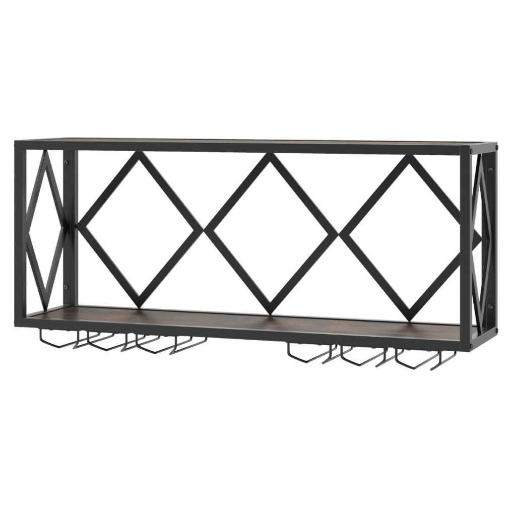 【Large Storage Space】This spacious wall-mounted wine rack provides ample storage space without taking up floor space and can hold up to 39 bottles. It features 6 rows of glass holders that can hold up to 12 glasses, and the top shelf provides extra space for decorative items.