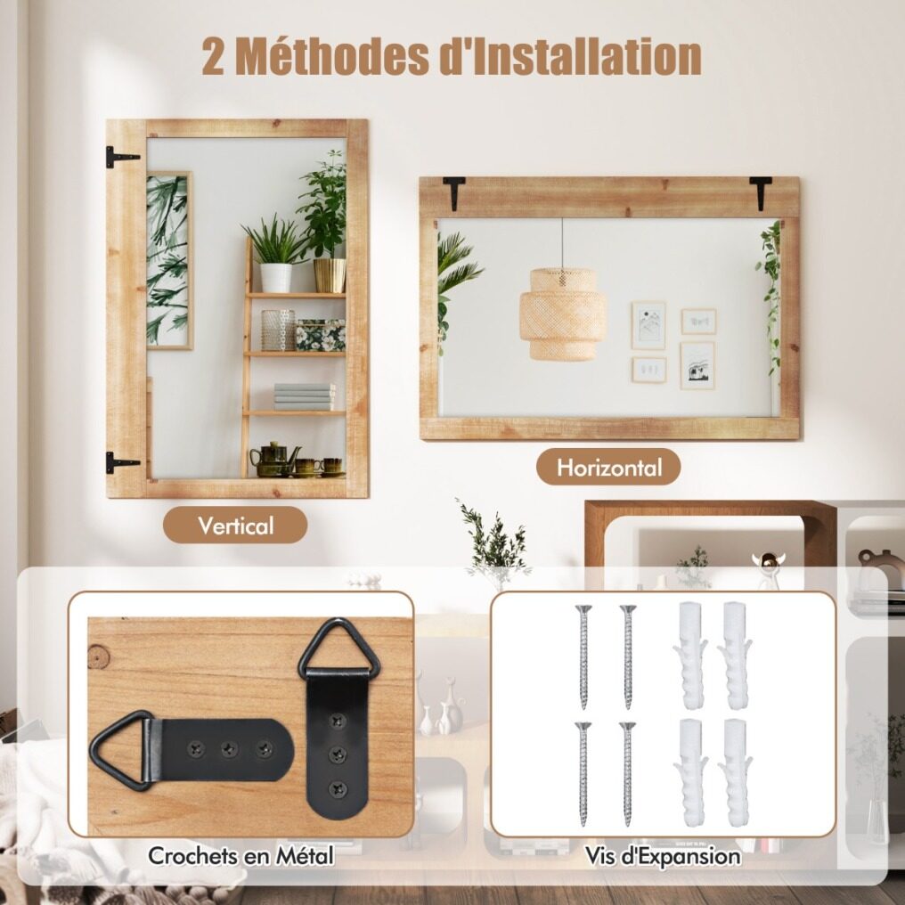 Horizontal or vertical hanging : There are 4 metal hooks and 4 expansion screws that allow you to fix the mirror vertically or horizontally on the wall. You can adjust its orientation as you like.