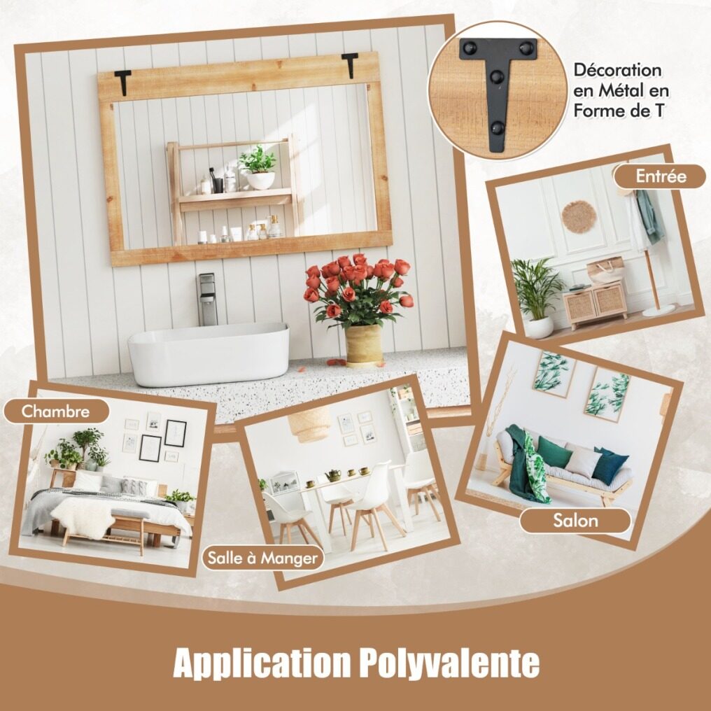 Farmhouse Style : The wall mirror with T-shaped metal decoration is a wonderful addition to your room. It can be used in the living room, bedroom, entryway, dining room and other rooms.