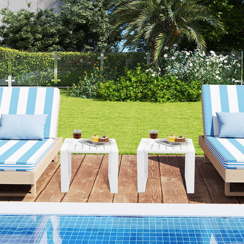 Weather Resistant Adirondack Outdoor Side Table Set of 2-White