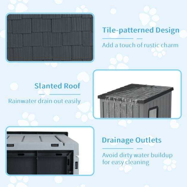Weatherproof construction: Made of water-resistant, fade-resistant PP material, the plastic pet house is robustly built for both indoor and outdoor use. The stable, crack-resistant PP structure guarantees a long service life.