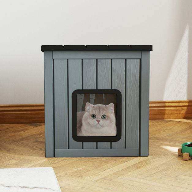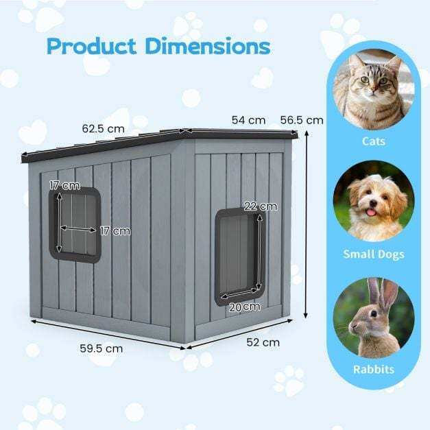 Versatile pet shelter: The cat house features a tile design that offers a modern look and blends harmoniously into a variety of environments. Suitable for small pets such as cats, puppies, rabbits, and chickens, it measures 62.5 cm x 54 cm x 56.5 cm (L x W x H).