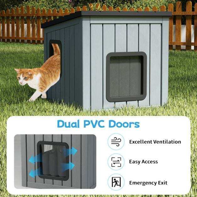 Double PVC Doors: Equipped with two doors, the cat house provides convenient access for small animals. Both doors feature PVC curtains that retain warmth in winter and provide cool comfort in hot weather.
