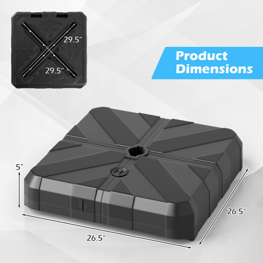 Built to Last: Constructed from high quality HDPE material, the cantilever umbrella base is capable of enduring harsh elements, from sun exposure to rains. Also, the selected material is engineered to withstand cracking and fading, providing a long-lasting foundation for your umbrella.