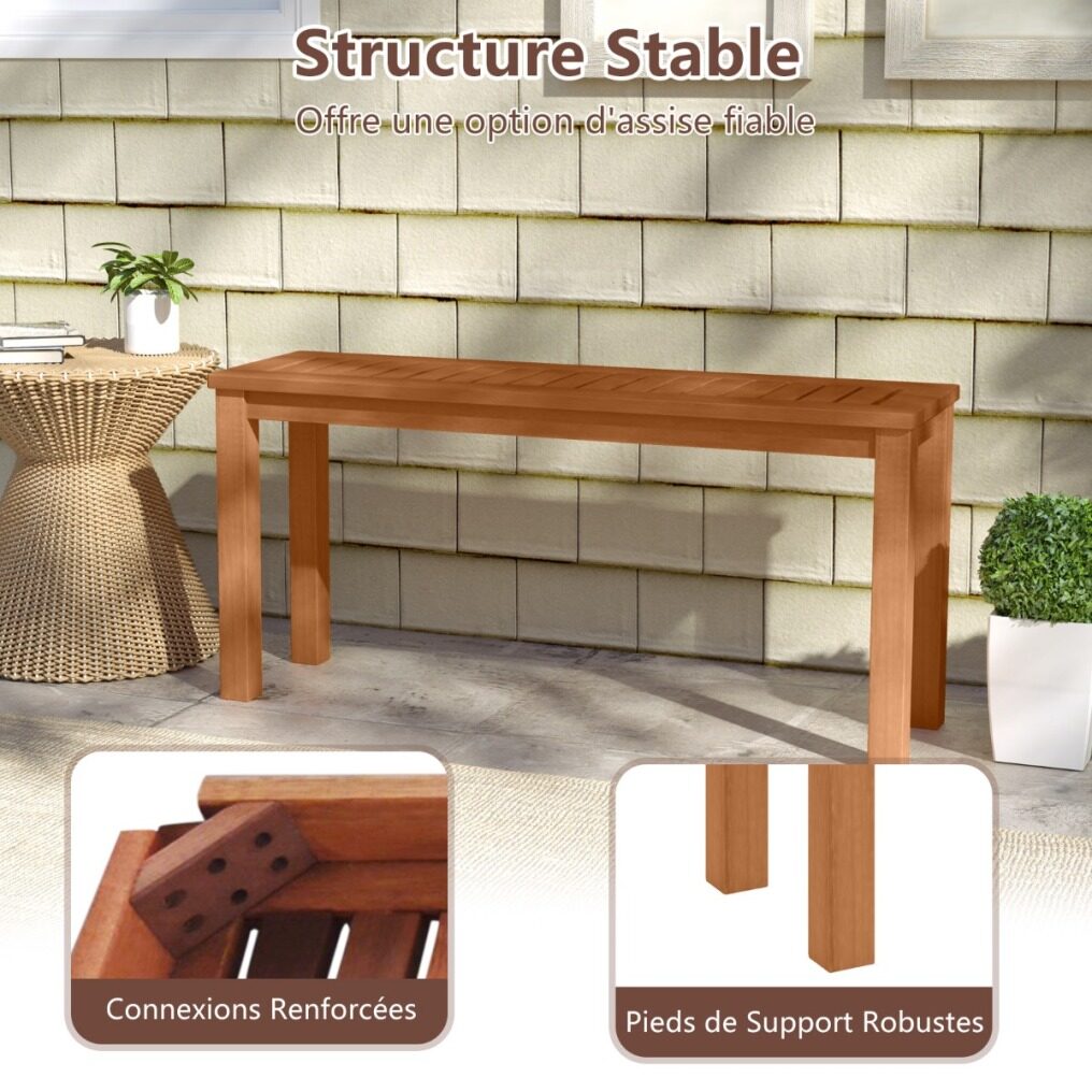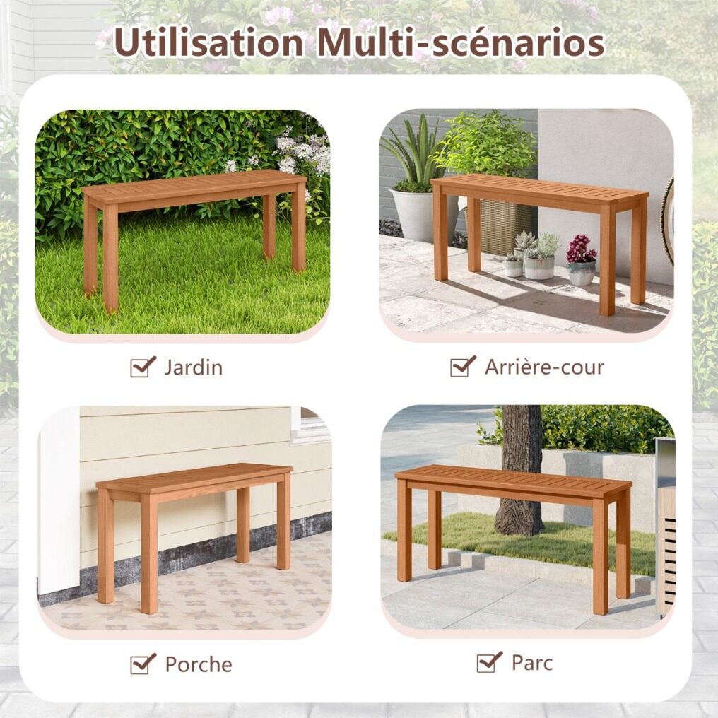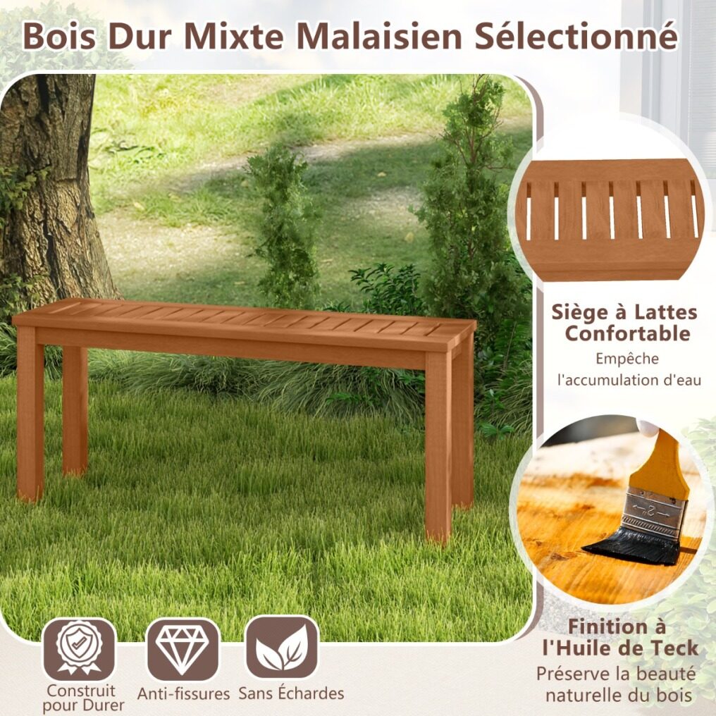 The garden bench is made of solid wood with a teak oil finish that provides exceptional durability and high strength, preventing cracking over time. The slatted frame design not only adds to the visual appeal, but also promotes air circulation and prevents water buildup, increasing comfort. The reinforced joints and sturdy legs provide exceptional stability, making the bench a reliable seating option. Ideal for gardens, backyards, porches, parks, or even your entryway, our back-locking bench is a versatile combination of style and functionality.