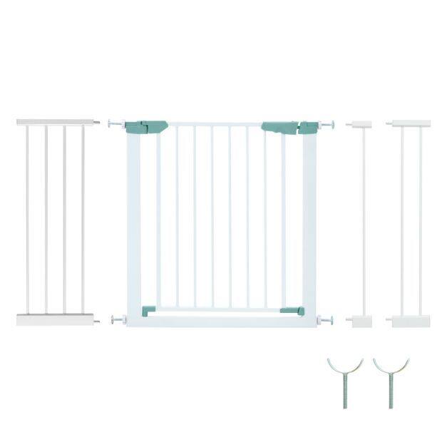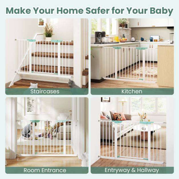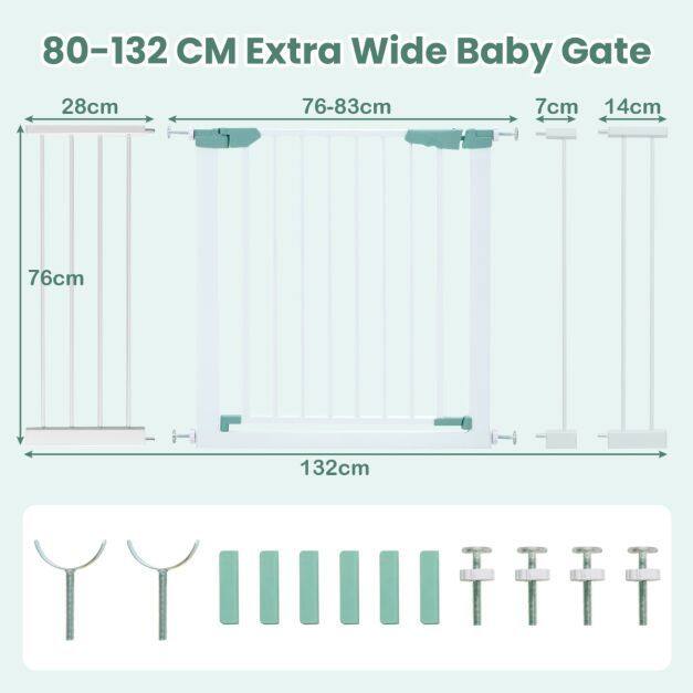 Extra-Wide Gate: Expands to fit openings between 70-119 cm wide with 3 extensions and reaches to 76 cm height, baby safety gate is ideal for doorways, hallways and stairways to protect children and small pets.