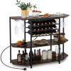 Versatile Wine Rack: Combining wood board and metal frame, this kitchen organizer comes with a touch of industrial-style design and is suitable for various scenarios. Except for use as a wine rack in the dining room or living room, it can also be used as a bar stand, coffee bar, console table or serving buffet.