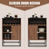 Wine Storage Cabinet Buffet Sideboard with Adjustable Shelf and Sliding Door-Brown