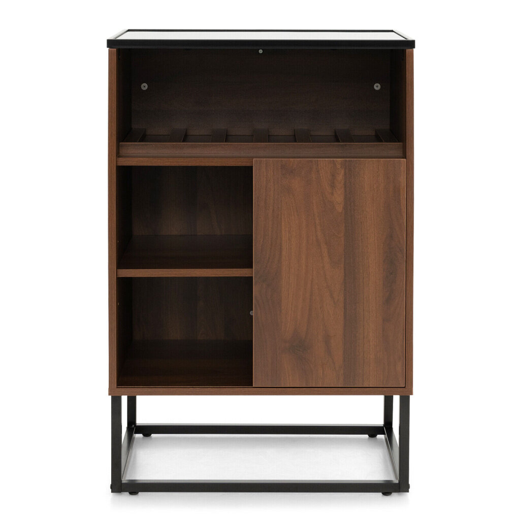 ● Classified Storage Space: 1 spacious tempered glass top and 1 storage cabinet with active shelf offer enough storage space for your glasses, dishes, spice jars or ornaments. Besides, there is an open wine rack for 6 bottles of wine, meeting your displaying or storing needs.