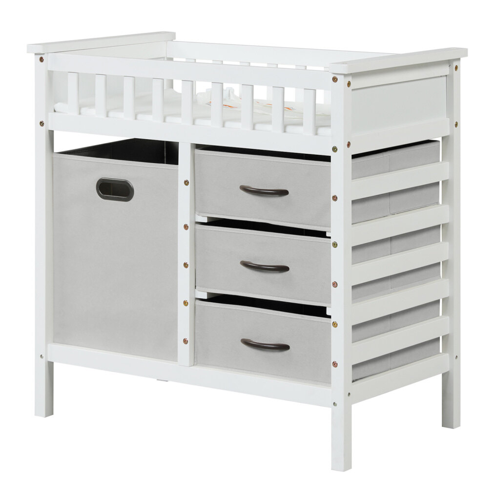 ● Ample Storage Space: Equipped with 3 pull-out fabric drawers and 1 large laundry hamper, this baby diaper changing station provides organized storage space for diapers, baby clothes, towels, toys and more. Besides, they can be removed and folded for flexible use and easy storage.