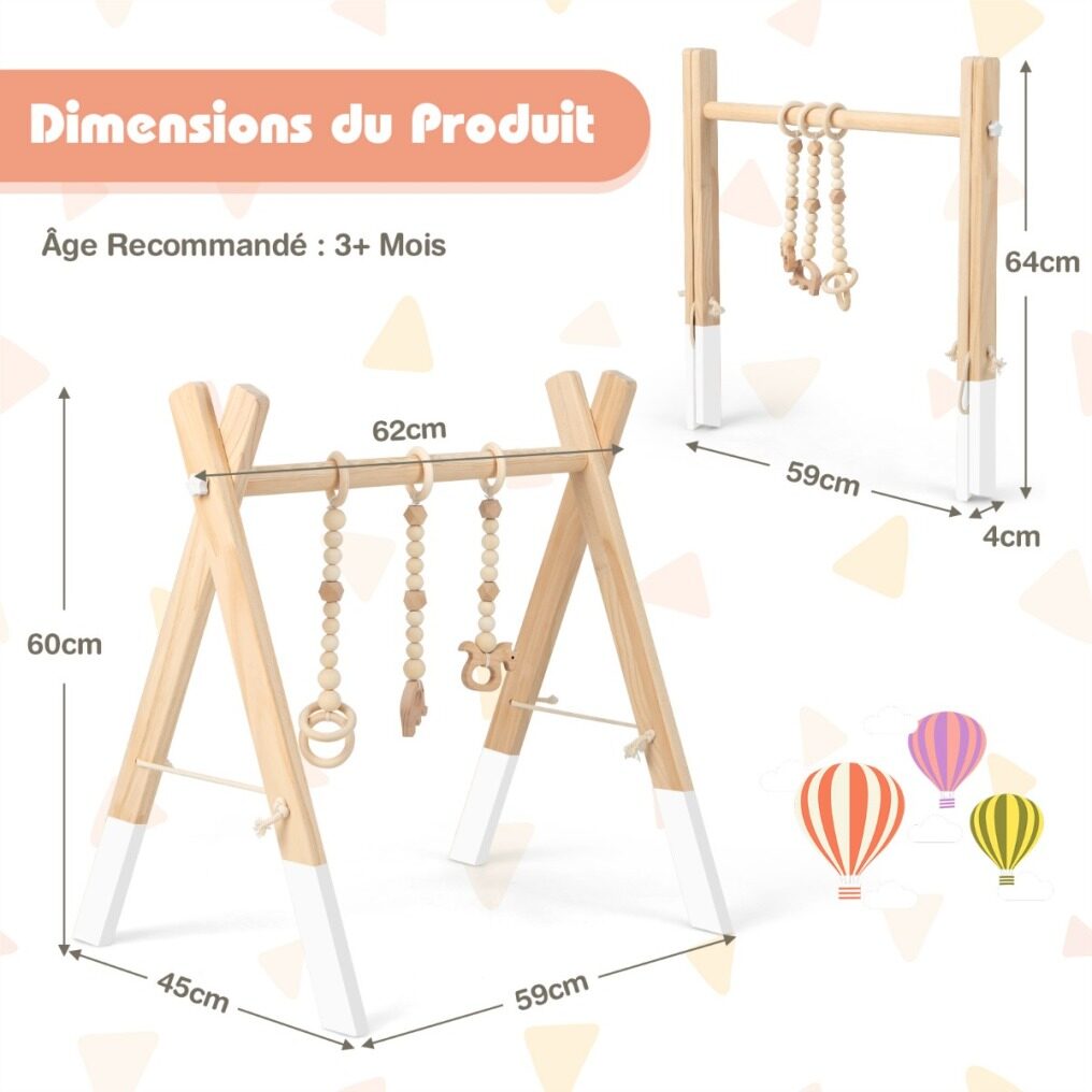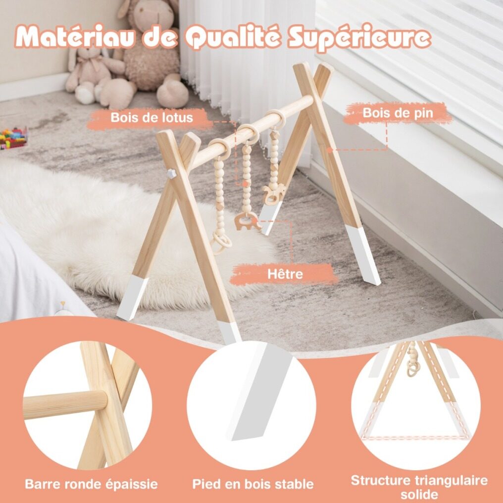 The most important thing is to ensure everything is safe and comfortable for babies. Our activity gym is made of 100% eco-friendly materials. This activity gym is ideal for their development and motor skills. When not in use, it can be easily disassembled and stored to optimize space.