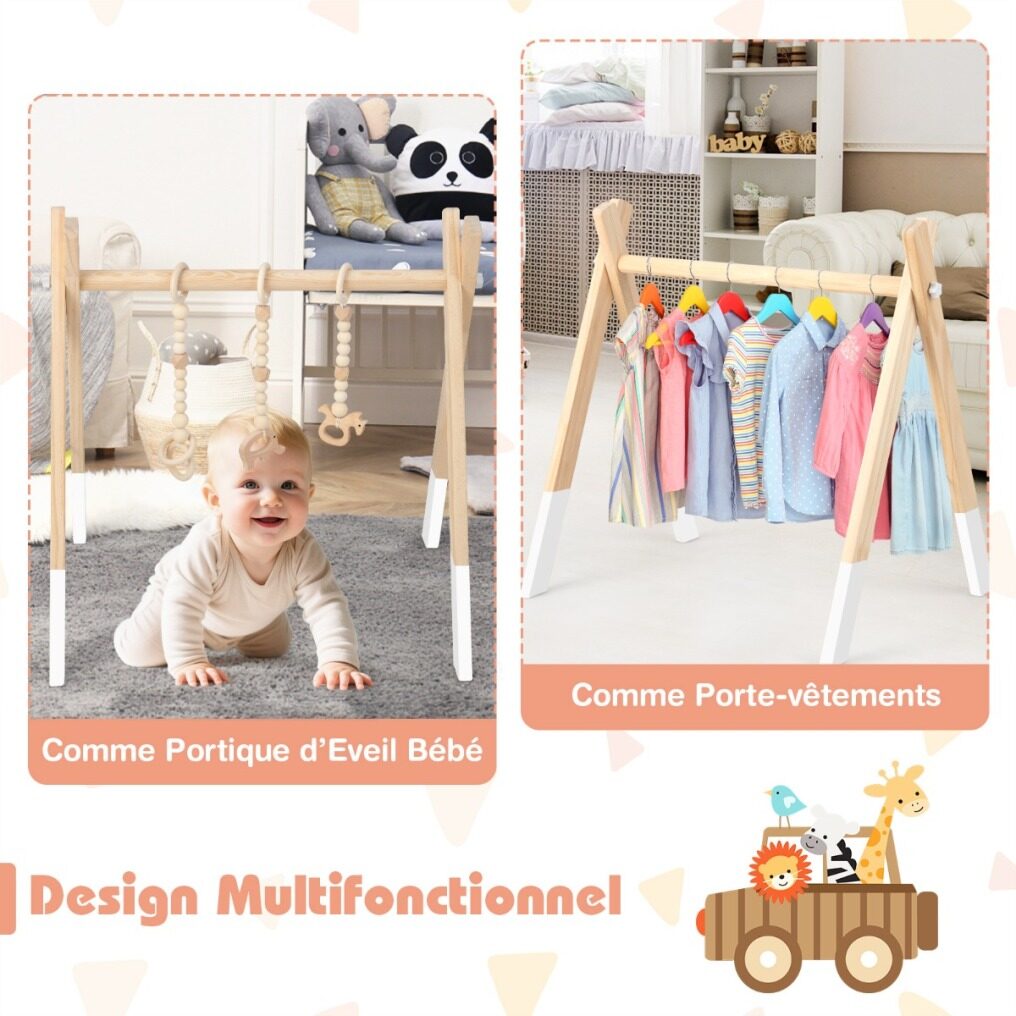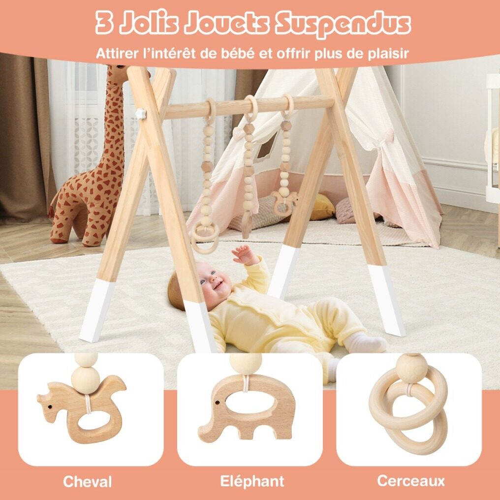 【Foldable Design】Its folding feature provides ample storage space that is convenient when not in use or as the baby grows. Its compact size saves space. It is also easy to detach, so you can change or add hanging toys for baby to play different games.