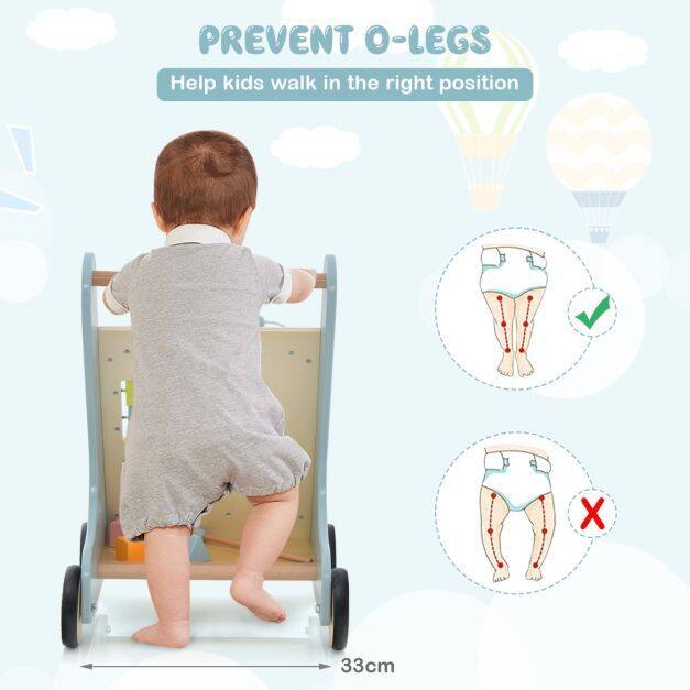 ● Improves and Develops Skills: The distance between the two 4" rear wheels is 13", which is appropriate for toddlers' walking. The push walker with sturdy structure will help kids walk in the right position, and effectively prevent O-legs. Additionally, the baby walker is conducive to the baby's imagination, hand-eye coordination, cognitive ability, finger dexterity, etc.