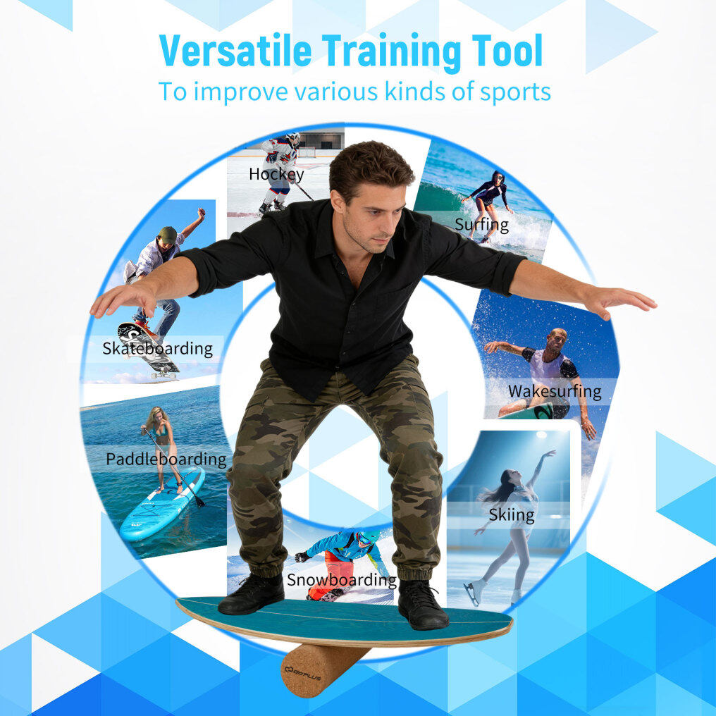 ● Premium Construction: This balance board trainer is built from 11-ply pressed birch wood, ensuring exceptional durability and supporting up to 330 lbs for worry-free training. The strong, stable board is designed for both indoor and outdoor use.