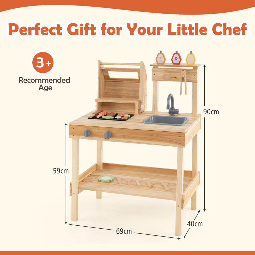● Safe and Reliable Construction: Crafted of natural, sturdy fir wood, this wooden BBQ grill playset features a splinter-free surface, ensuring a safe play environment for little ones. Moreover, the toy BBQ grill set complies with ASTM and CPSIA, providing enhanced security and reliability.