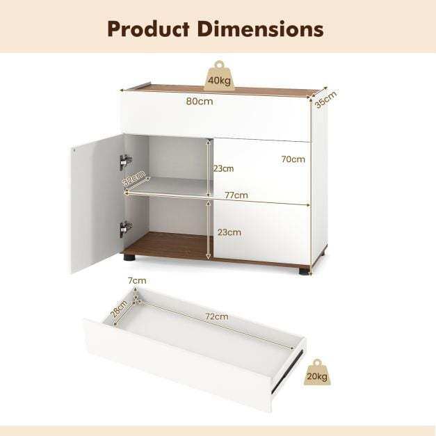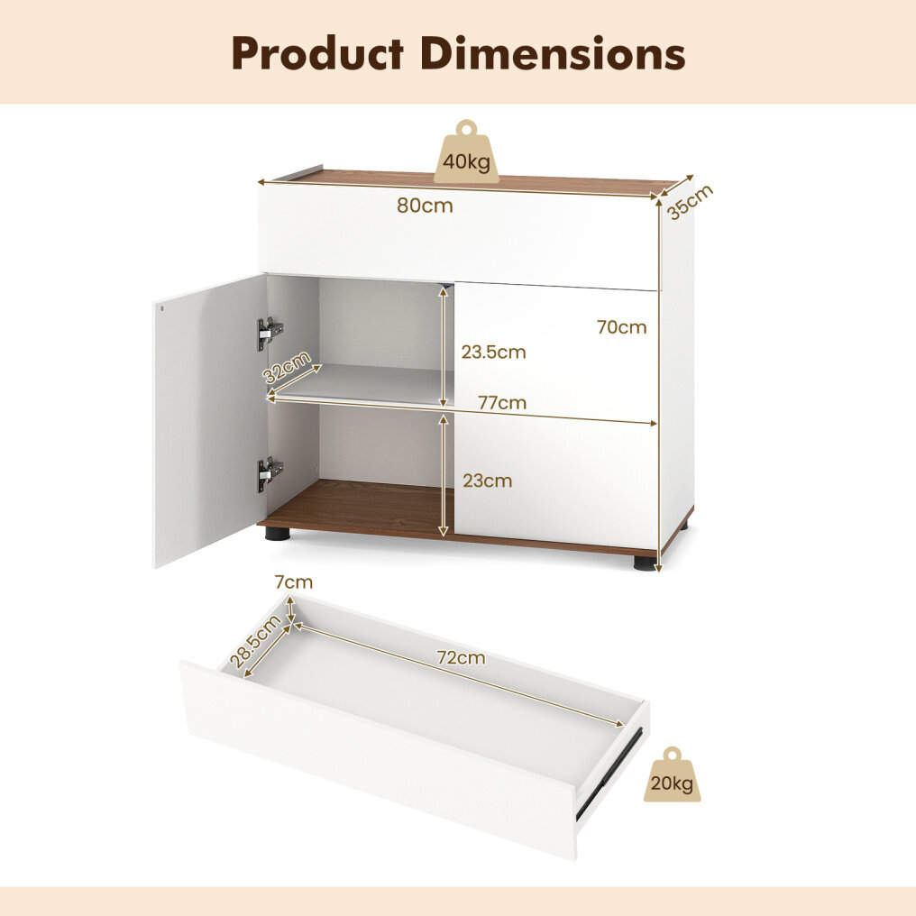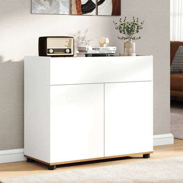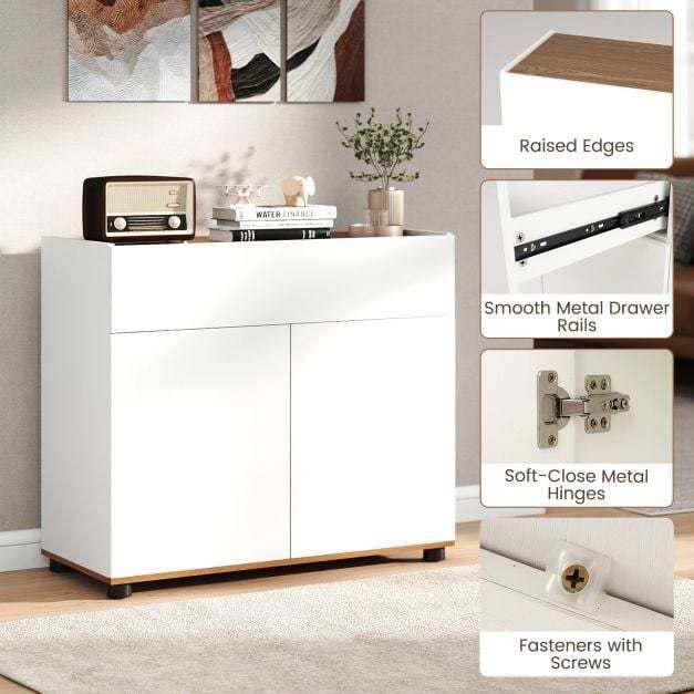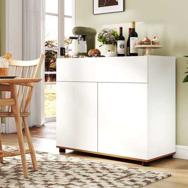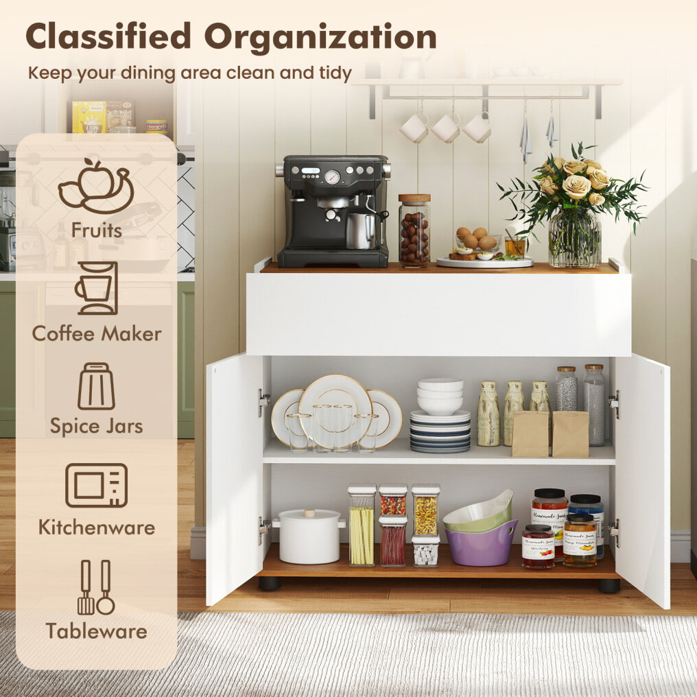Organized Storage Solution: Including a cabinet top, a drawer, and a 2-door compartment, this sideboard buffet cabinet provides versatile storage options. It will keep your belongings neatly organized and within easy reach, from tableware to kitchenware and more.
