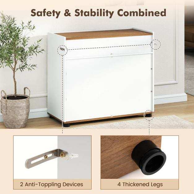 Safe & Stable Construction: This kitchen storage cabinet is anchored to the wall with 2 anti-toppling devices to prevent accidental tipping. Supported by 4 reinforced, sturdy legs, the modern farmhouse credenza boasts reliable stability and strength.