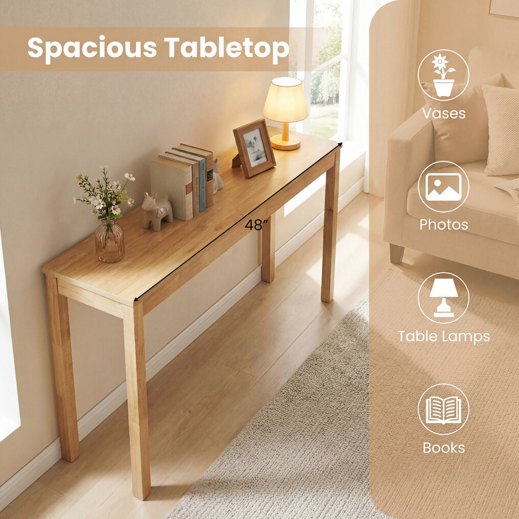 ● Long Surface Area: Show off your favorite photos, vases, and keepsakes on the spacious 48-inch tabletop, designed for both style and function. This wood console table is perfect for organizing grab-and-go essentials in any busy space.