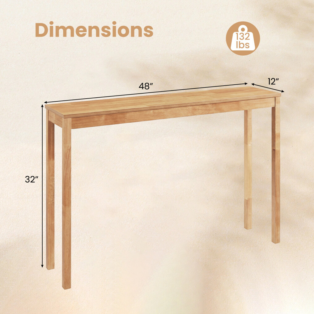 ● Solid Wood Console Table: Experience unmatched durability with 4 solid, high-strength rubber wood legs that resist cracks and splinters. This entryway table confidently supports up to 132 lbs for all your decoration needs.