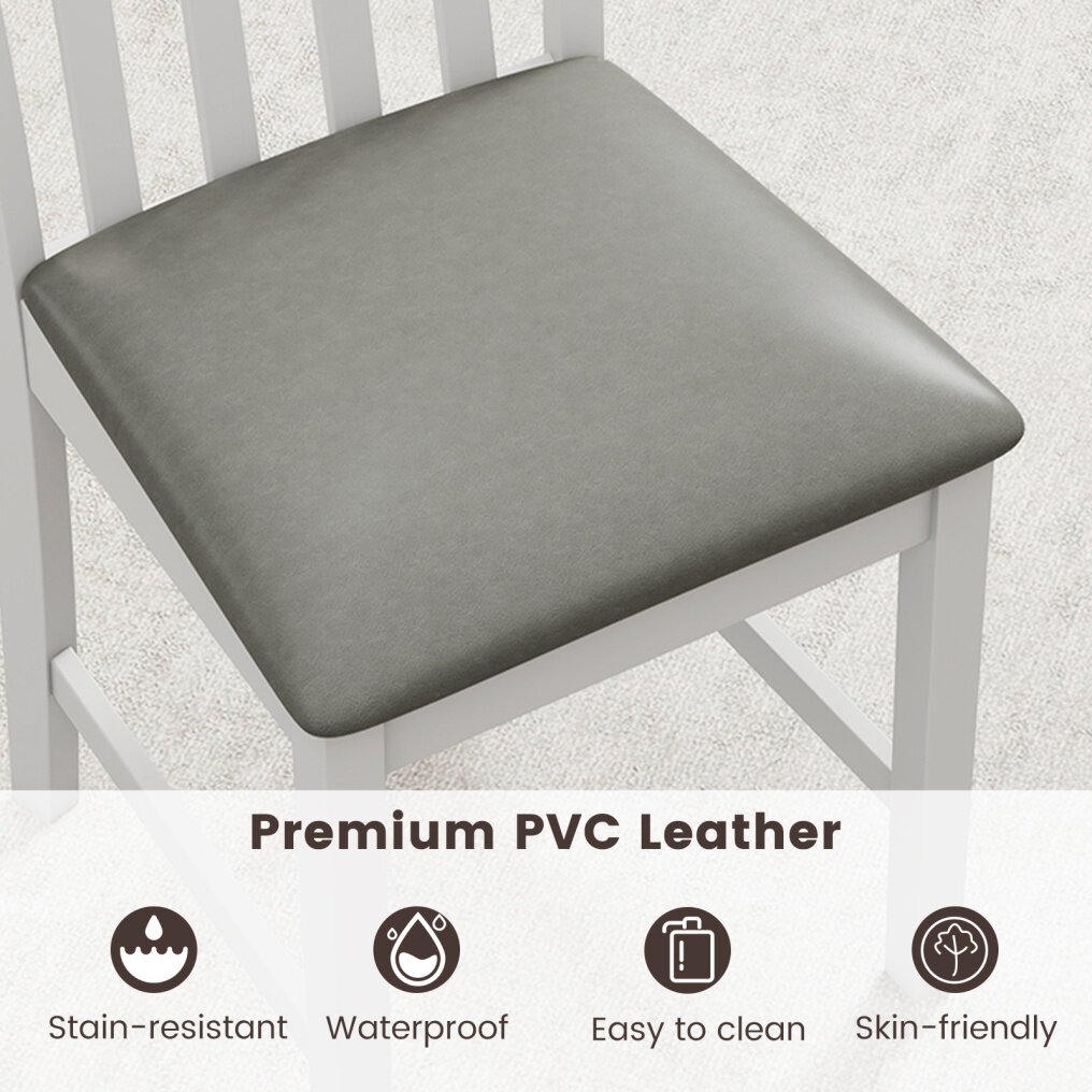 ● Stylish Appearance: With the combination of white wood finish and gray leather, these farmhouse wooden dining chairs can seamlessly blend into any decoration. Their versatile design makes them suitable for various indoor settings, from modern office spaces to casual dining areas.