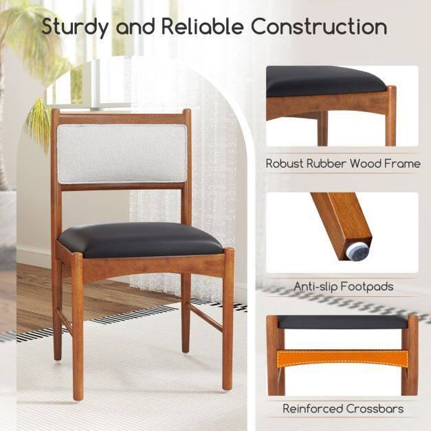 Rustic and Elegant Appearance: With a combination of rich brown wood finishes, sleek black leather, and white faux sherpa, these mid-century modern wooden dining chairs exude rustic charm and modern elegance to your dining area, elevating the aesthetic appeal of any space.