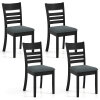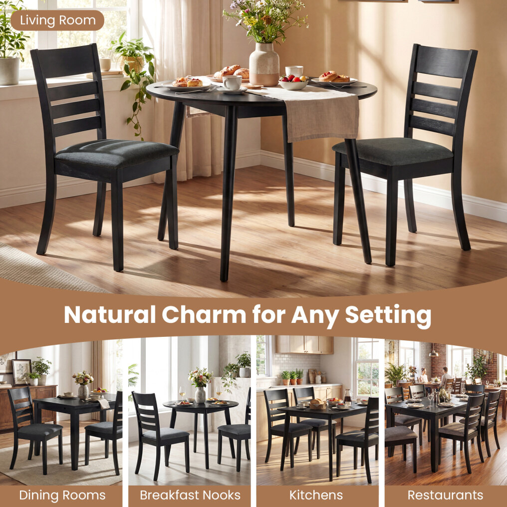 Wooden Dining Chairs Set of 4 Upholstered Kitchen Chairs with Rubber Wood Frame-Black