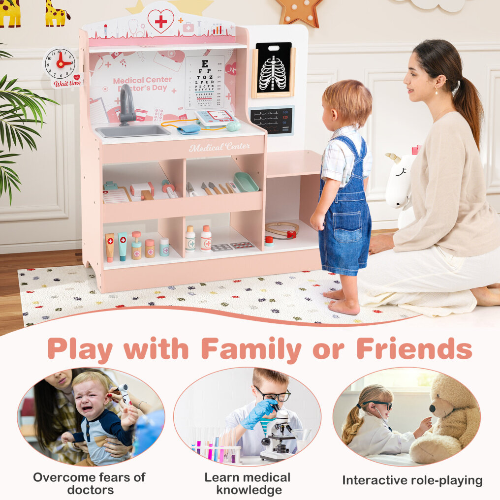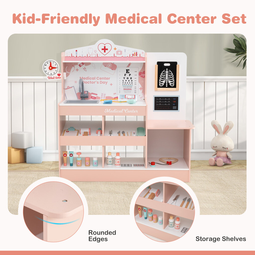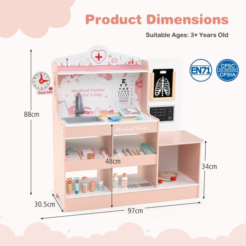 ● Thoughtful Storage Solutions: Designed to keep your play area organized, the pretend doctor's playset features a top shelf, a spacious countertop, 4 open compartments, and bottom shelf that provide ample space for easy access to tools. Plus, the built-in barriers prevent accessories from falling.