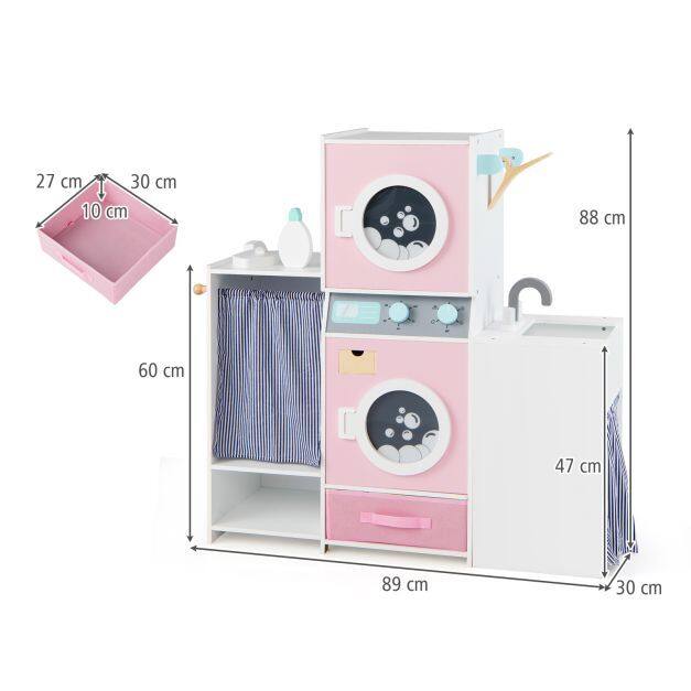 ● Solid & Stable Laundry Room: Specifically crafted to withstand enthusiastic play, the ASTM/CPSIA compliant realistic laundry room is built on a sturdy raised base with rounded corners for safety. Additionally, solid wooden construction ensures dependable steadiness and long-lasting of reliable use, supporting your little ones through countless laundry sessions.