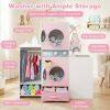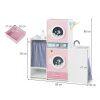 ● Washer with Ample Storage: Designed with practicality, this role play washer includes multiple storage features such as a shelf, 2 hanging hooks and a side compartment. The blend of open compartments and a foldable fabric drawer organizes accessories neatly, making playtime both fun and tidy. Meanwhile, organizing laundry supplies helps little ones develop their hands-on skills and organizational abilities.