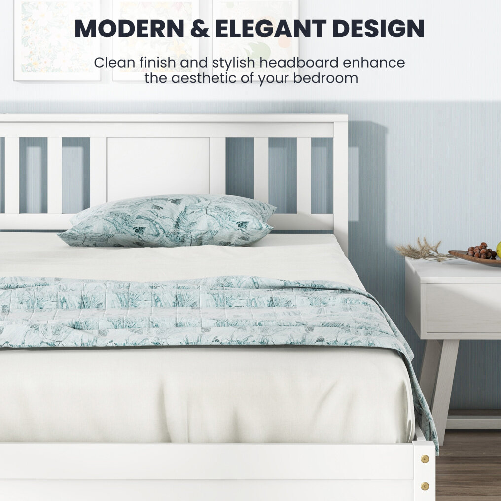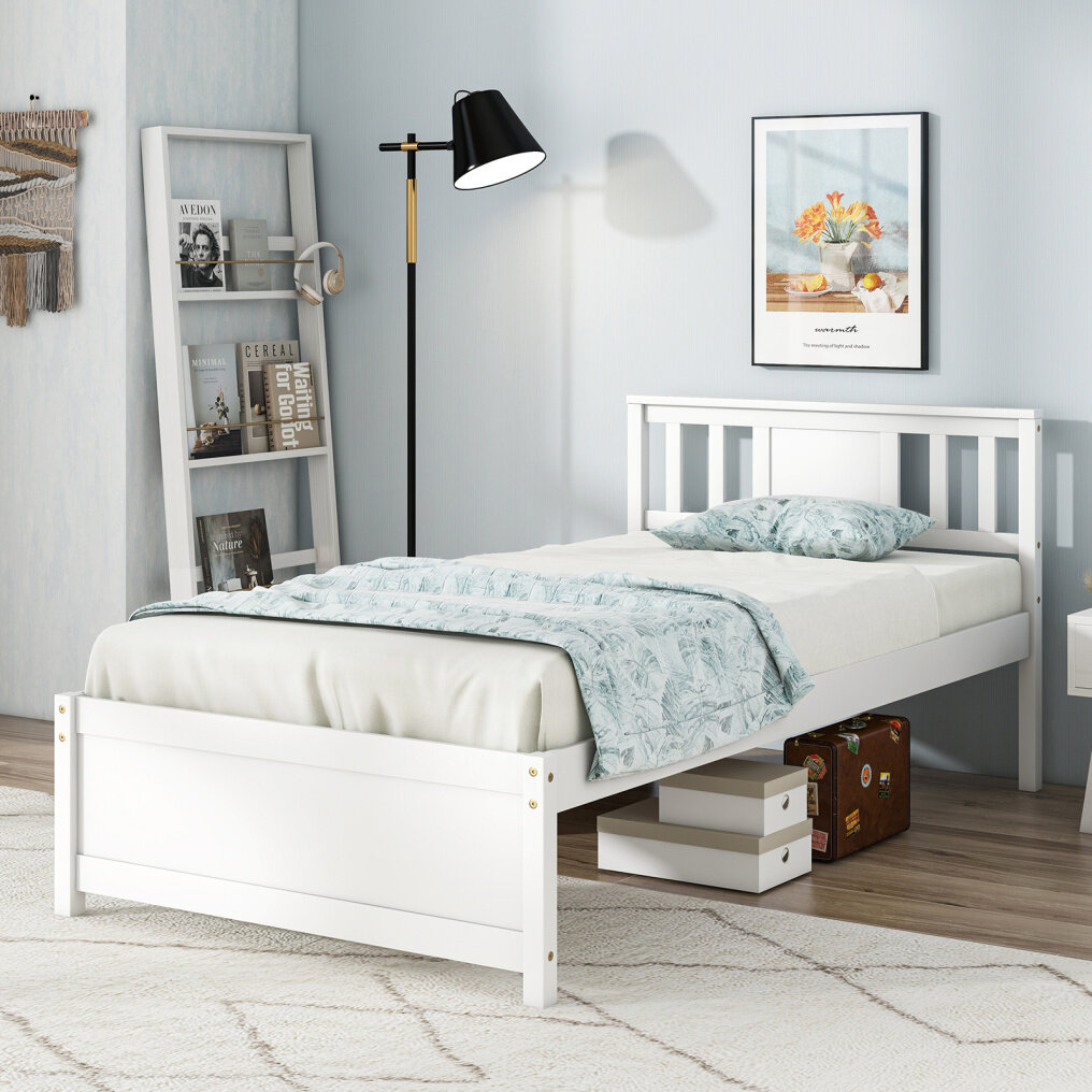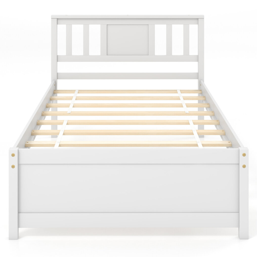 Wooden Platform Bed with Headboard and Wood Slat Support White-Twin Size