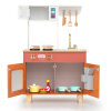 Smart Storage Solutions: Behind the 3 cabinet doors of this toy kitchen set, ample storage space swallows play food, recipe cards, and utensils to keep the "chef's" space clutter-free. Everything has a hidden home, so cleanup becomes part of the fun.