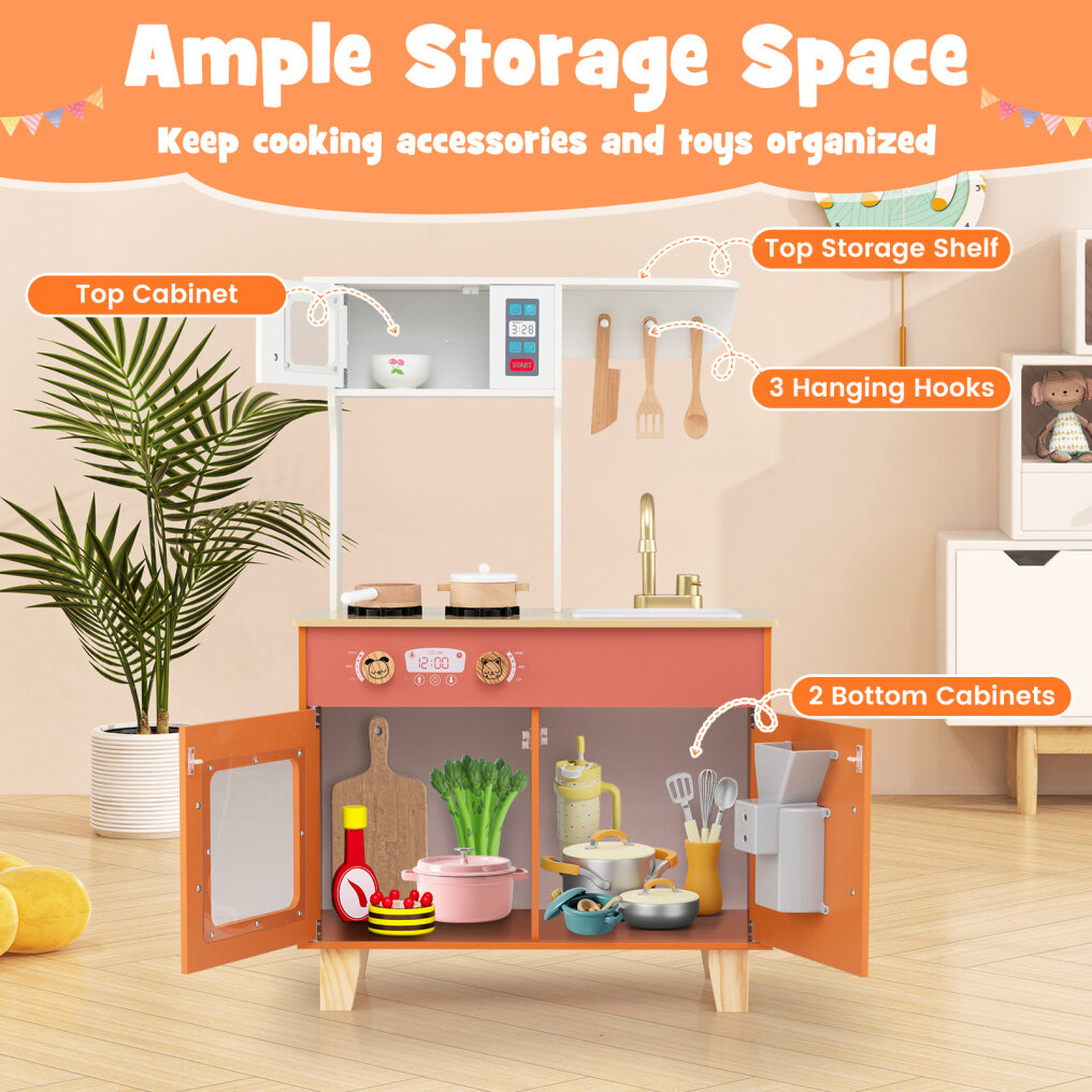 Perfect for youngsters aged 3-6, this enchanting kitchen set includes everything your little chef needs: a microwave, 2-burner stove, swivel faucet sink, plus a fantastic interactive ice dispenser that releases cubes with the press of a cup. But wait—there's more! Smart storage cabinet tucks away all their gadgets neatly, and the entire setup is anchored safely to prevent any tips or spills, backed by our commitment to top safety standards. Spark joy and creativity in your child's daily play with our beautifully crafted kitchen. An outstanding gift for any special day that keeps little hands busy and hearts full of fun! Buy now and watch your little chef cook up a storm in their very own kitchen paradise!