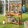 ● Solid Wood Construction: Crafted from premium pine wood material, known for its exceptional resistance to warping, the garden workstation is sturdy and stable for long-lasting service. The tabletop is capable of holding 132 lbs and the lower shelf can hold up to 44 lbs.