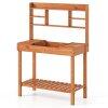 ● More Thoughtful Details: This wooden potting bench table comes with sturdy wooden legs and tight screws connection, which endows a reliable construction. Moreover, the slat rack design reduces the water accumulation while bringing a touch of elegance.
