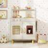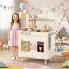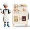 ● Kids-Friendly Material and Safety: Crafted with solid wooden boards, the ASTM/CPSIA compliant cooking toy kitchen prioritizes safety and longevity with rounded corners. Moreover, the elevated sturdy legs ensure stability that parents can rest easy knowing their little ones is playing with a toy that's built to last and secure.