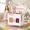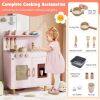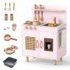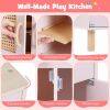 ● Kids-Friendly Material and Safety: Crafted with solid wooden boards, the ASTM/CPSIA compliant cooking toy kitchen prioritizes safety and longevity with rounded corners. Moreover, the elevated sturdy legs ensure stability that parents can rest easy knowing their little ones is playing with a toy that's built to last and secure.