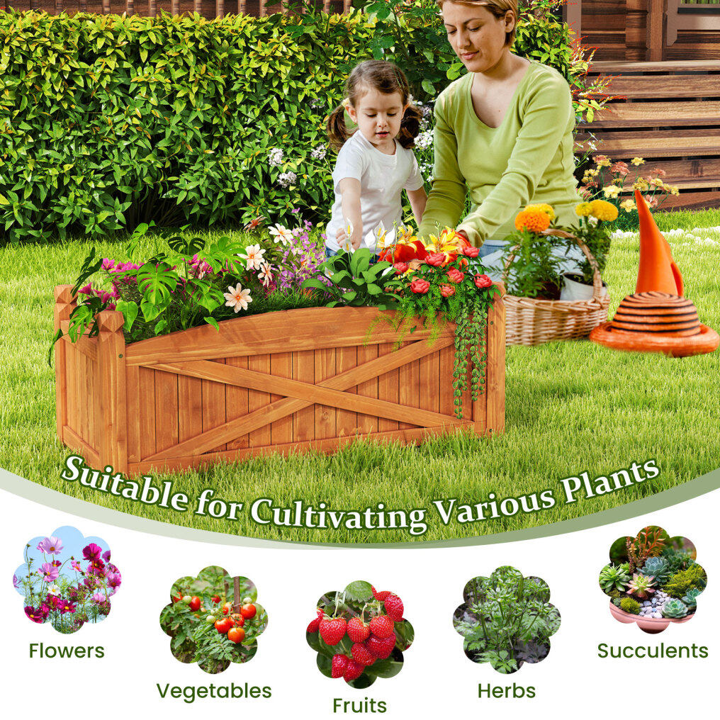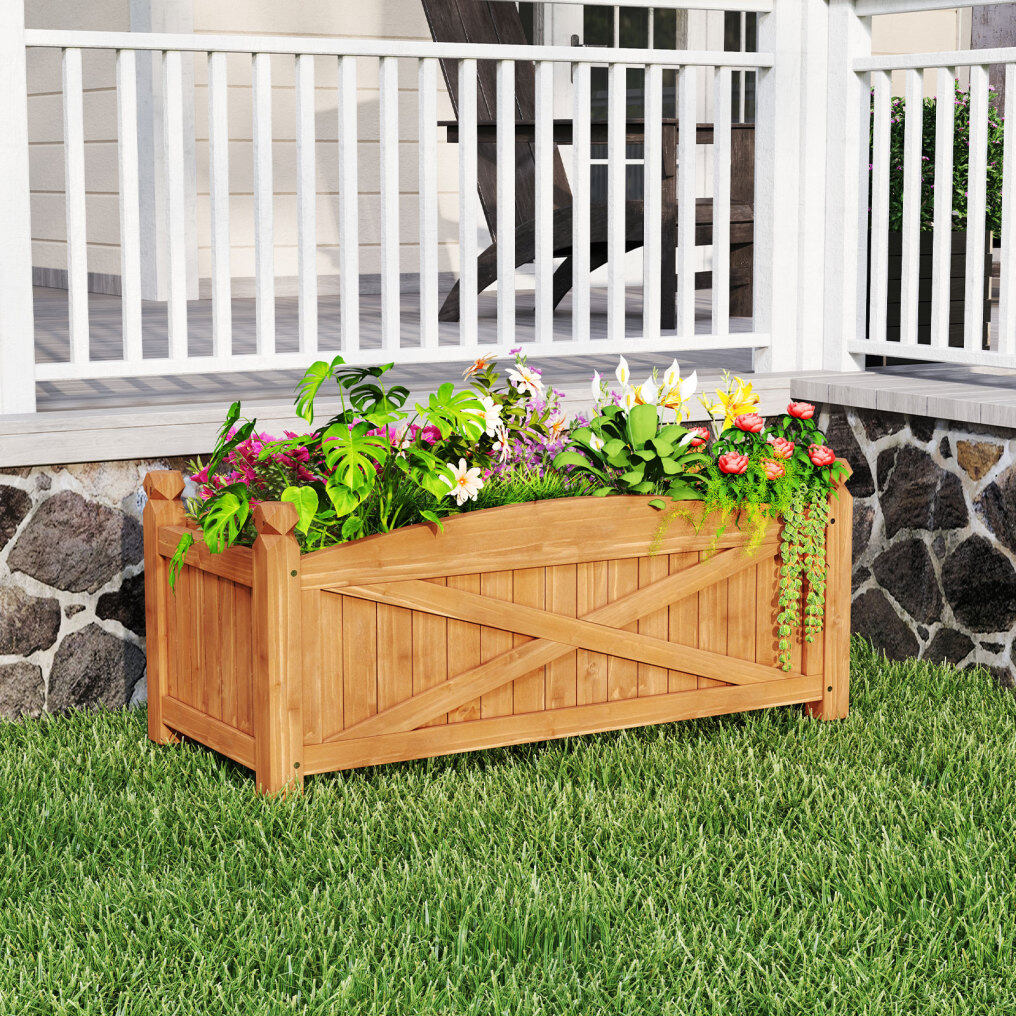 ● Considerate Details: This patio flower box is finished with decorative corners and X-shaped patterns, adding a touch of sophistication, while the round corners prevent injuries from accidental collisions. Additionally, it adopts convenient slotted legs for hassle-free assembly.