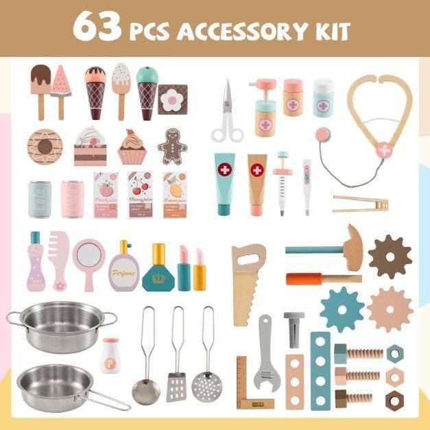 ● Wall-mounted Space-saver: The secure wall-anchoring kit turns any blank wall or door back into a floor-free kids activity center. The flip panels of the kitchen and doctor sections fold flat when playtime ends, reclaiming precious square footage in small spaces.