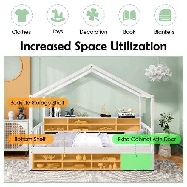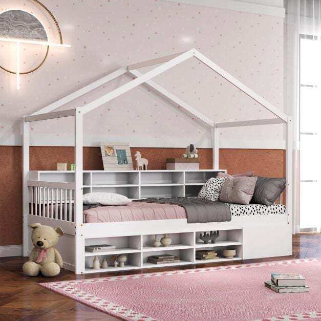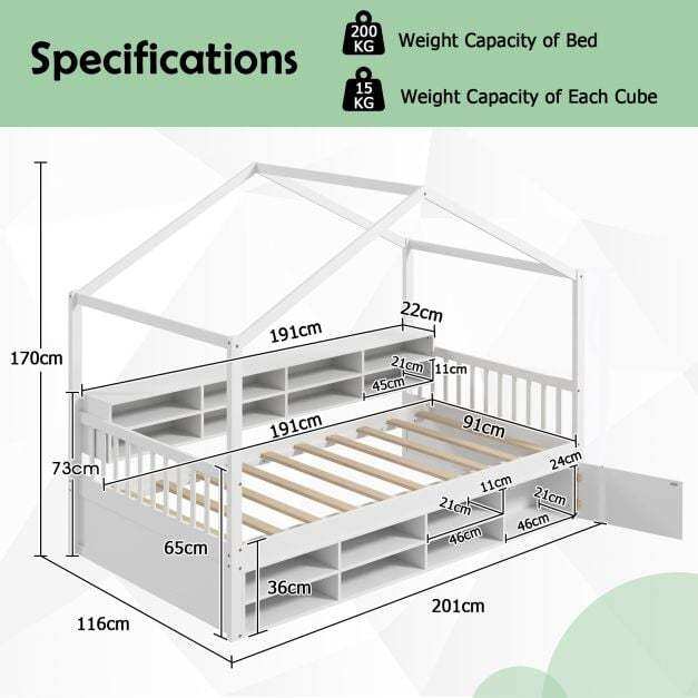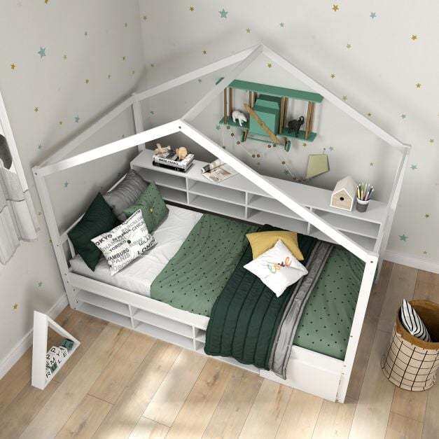 Spacious Bedside Storage: The integrated bedside shelf includes 8 storage cubes and a convenient countertop. Therefore, the house bed can keep kid’s essential items readily accessible and perfectly organized.