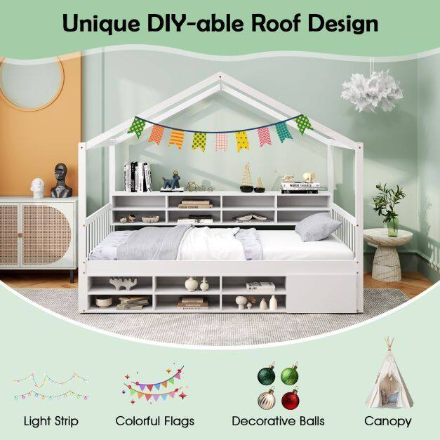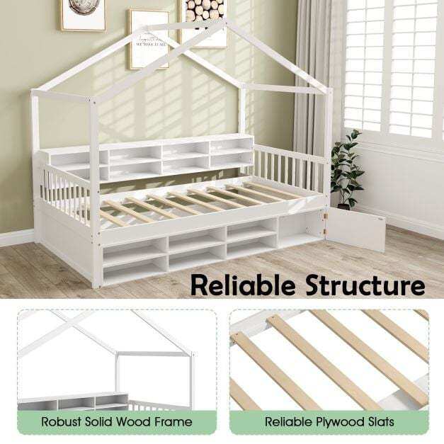 Adorable House-Shaped Frame: The single size bed frame is designed with a delightful house-shaped structure, which not only fuels the imagination but offers endless possibilities for decoration with small flags, string lights, photos, etc.