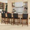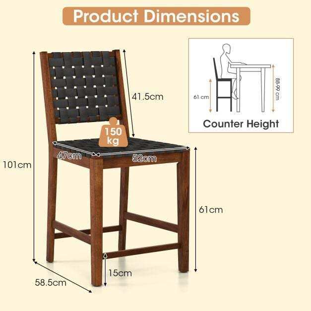 The curved backrest with a 100-degree inclined design perfectly conforms to your body curve, ensuring optimal support. The seat and back are covered with well-woven PU leather straps that not only provide a stylish look but also offer strong support. Moreover, the main frame made of selected acacia wood and rubber wood ensures high stability and durability. These bar stools are perfect for various indoor settings, such as kitchens, dining rooms, and restaurants, meeting your different demands. If you are looking for a set of bar stools like this, do not hesitate to place an order!