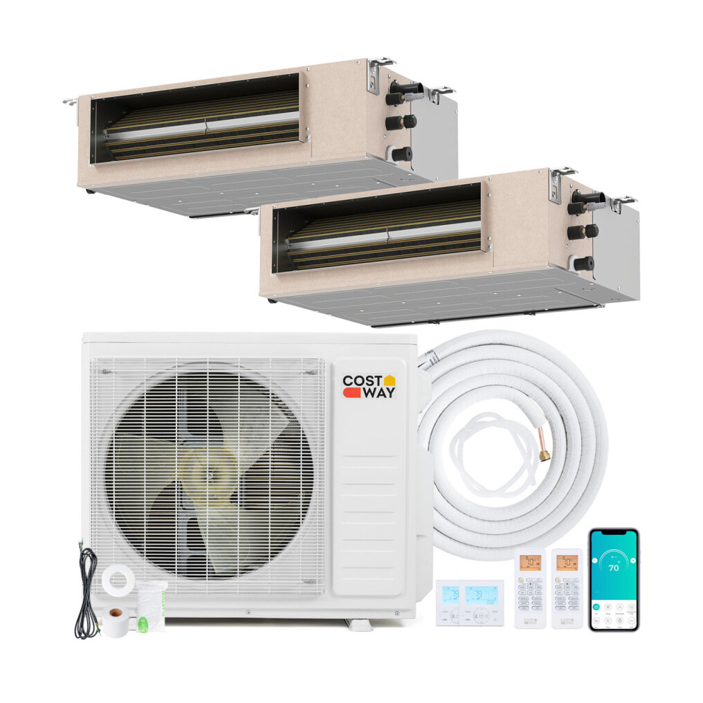 ● Multi-Zone Climate Control: This 27000 BTU concealed ducted mini split AC provides powerful and balanced heating and cooling across 2 zones. The outdoor unit features chassis electrical heating to ensure reliable operation in tough weather with -13℉ low ambient heating and 131℉ high ambient cooling.