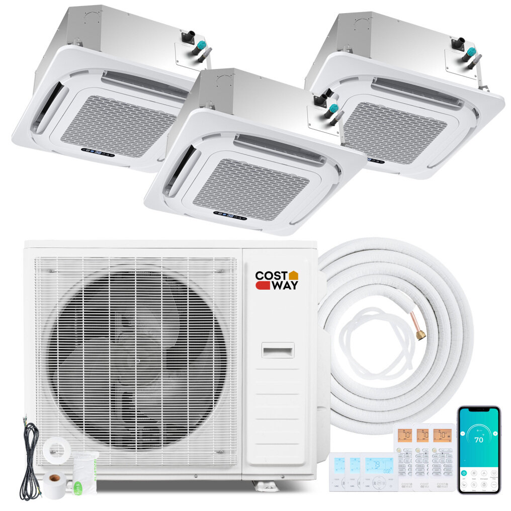 ● Wide Use & Exceptional Versatility: This 3-zone split ceiling cassette ac is ideal for homes, offices, meeting rooms and light commercial spaces such as restaurants, retail stores, etc. Besides, the outdoor unit is compatible with various types of indoor units, including ductless wall mounted ac, ductless ceiling cassette and concealed ducted ac. Note: Professional installation is required.